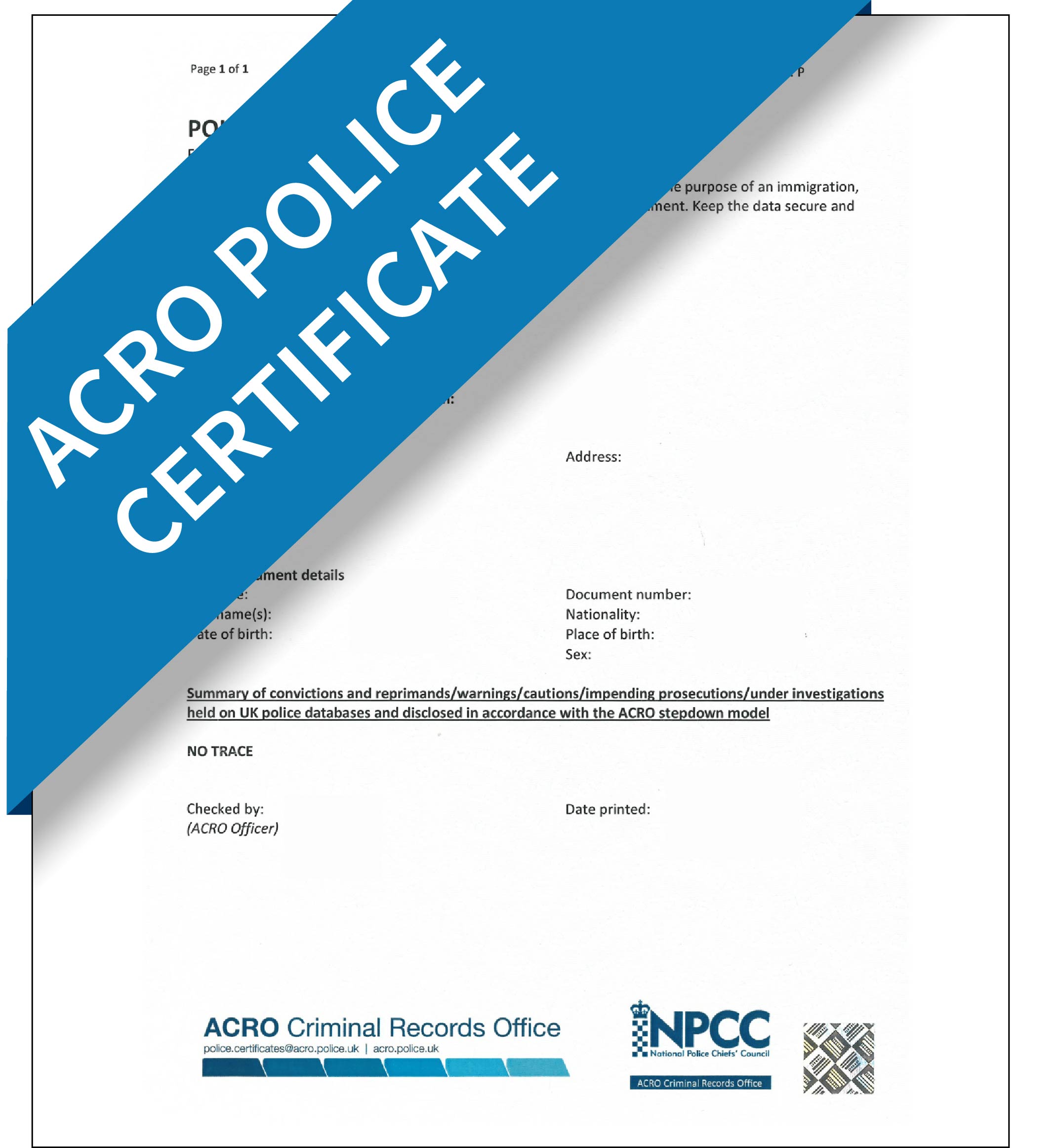 What is an ACRO Police Certificate?: An official document issued by the UK's ACRO Criminal Records Office. It confirms an individual's criminal record status and is commonly required for visa, immigration, or residency applications abroad.